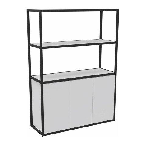 BIBLIOTHÈQUE LUMYA L 120 X P 41,5 X H 162 CM MODULE DÉPART STRUCTURE MÉTAL NOIR 3 PORTES BLANC