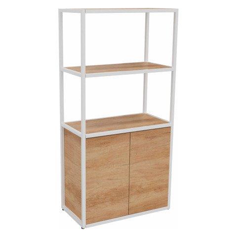 BIBLIOTHÈQUE LUMYA L 80 X P 41,5 X H 162 CM MODULE DÉPART STRUCTURE MÉTAL BLANC 2 PORTES CHÊNE NATUREL