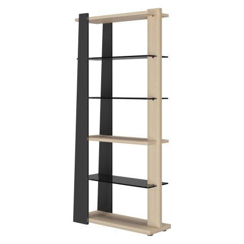 Descriptif du produit :- Apporter une touche de déco avec la bibliothèque Onyx.Bibliothèque type fuseau pour un esprit chic et déco.Structure mélaminé chêne structuré et veiné.3 tablettes en verre teinté gris épaisseur 10 mm.1 tablette bois.Eclairage LED vertical disponible en option.Dimensions : H 190 x L 87 x P 35 cm.Livré démonté, montage possible en option.
