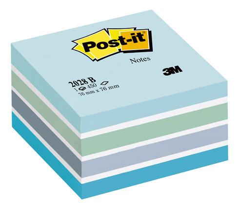 BLOC CUBE REPOSITIONNABLE COULEURS AQUARELLE BLEU POST-IT 76 X 76 MM - BLOC DE 450 FEUILLES