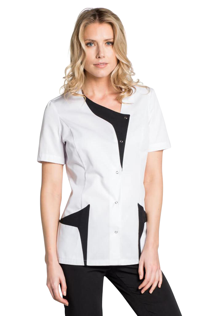 Descriptif du produit :Blouse de travail bicolor blanche et noireCette blouse médicale est destinée aux métiers de l'esthétique. Elégante et confortable, elle deviendra votre coup de coeur. Une coupe exquise qui sublime la silhouette. Cette tunique cintrée, délicieusement féminine, très agréable à porter grâce à son tissu Cette tunique pour estheticienne se compose d'un tissu 67% polyester et 33% coton avec ...