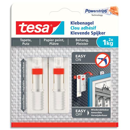 Descriptif du produit :CLOU ADHESIF AJ.P.PEINT 1KG X2 Le clou adhésif ajustable Powerstrips pour papier peint & plâtre ajustable supporte 1 Kg lot de 2 de chez Tesa, les bandes adhésives fournies permettent d'accrocher des objets de jusqu'à 1 Kg de manière fiable sur les surfaces texturées et délicates comme les murs peints en plâtre ou sur du papier peint.