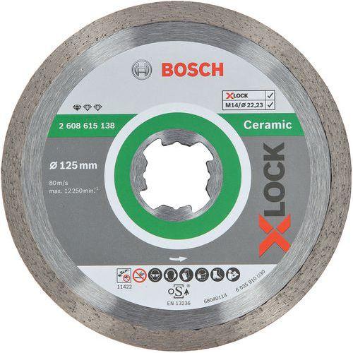 Disques à tronçonner diamantés Xlock Standard for Ceramic Bosch Alésage Ø : 22.23 mm Diamètre Ø : 115 mm Modèle : XLOCK STANDARD FOR CERAMIC Pour matériau : Carrelage Réf. Fabricant : 2608615137 Usage : Coupe Disque à tronçonner diamanté Best for Universal : pour une longévité exceptionnelle dans les matériaux de construction courants. Convient particulièrement à des utilisations avec les matériaux suivants : béton (vieux/armé), bordure de trottoir, brique, chape en béton, plâtrechaux, grès, métal et mortier. Également adapté à une utilisation avec l'asphalte, le béton frais, le granit, le marbre, la pierre naturelle, le porphyre, les briques réfractaires, les ardoises, ainsi que la pierre composite. Disques à tronçonner diamantés Xlock Standard for Ceramic, Alésage Ø: 22.23 mm, Ø: 115 mm, Modèle: XLOCK STANDARD FOR CERAMIC, Pour matériau: Carrelage, Usage: Coupe, Réf. Fabricant: 2608615137