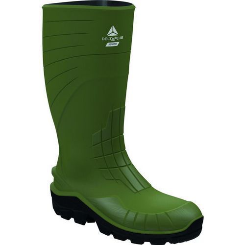 Bottes de sécurité en polyuréthane AEROBUILD Delta Plus Amagnétique : non Antistatique : oui CE : oui Coloris : Vert Embout de sécurité : Métallique Embout protection : 200 J Garantie client : 3 mois Genre : Mixte Modèle de tige : Haut Norme : Règlement (UE) 2016/425 Norme EN : EN 20345 Norme EN 20345 : S5 Poids du produit : 904 g Pointure : 42 Semelle résistante aux hydrocarbures : oui Construction du modèle Aerobuild pour une grande isolation au froid et grande stabilité assurée par les propriétés d'adhérence de la semelle. Ergonomie du chaussant pour assurer le confort au porté. Absorption des chocs au talon afin de soulager les articulations. Légèreté du produit pour limiter la fatigue tout au long de la journée. Ergonomie du chaussant pour assurer le confort au porté. Effet seconde peau qui assure un chaussant au plus près du pied. Bottes de sécurité en polyuréthane, Embout de sécurité: Métallique, Modèle de tige: Haut, Pointure: 42, Coloris: Vert, Poids: 904 g, Antistatique: oui, Norme EN 20345: S5, Amagnétique: non, Genre: Mixte, Semelle résistante aux hydrocarbures: oui, Embout protection: 200 J, CE: oui