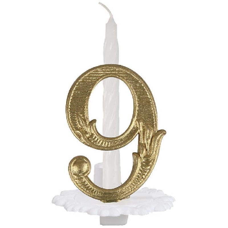 Descriptif du produit :Bougies chiffre n° 9 comprenant une élégante enluminure dorée reproduisant le chiffre "1".Cette bougie comprend une base blanche, une bougie et le chiffre doré, pour une décoration originale sur les gâteaux d'aniversaire. Livraison gratuite à partir de 190 euros d'achat.