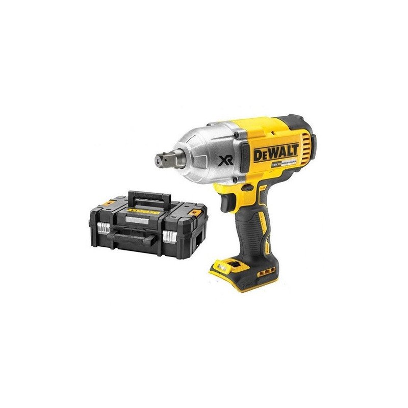 La boulonneuse à chocs 18V XR de Dewalt est un outil robuste et performant conçu pour des applications exigeantes. Équipée d'une lampe LED pour une meilleure visibilité dans les environnements de travail peu éclairés, elle facilite les opérations de vissage. Livré dans un coffret TSTAK pour un transport et un stockage faciles, cet outil est accompagné d'un moteur robuste délivrant un couple soutenu de 950 Nm et jusqu'à 2400 impacts par minute, idéal pour des opérations de boulonnage très exigeantes.Dotée de la dernière génération de la technologie XR de Dewalt, cette boulonneuse offre trois réglages de vitesse et des réglages de couple pour un contrôle optimal de l'application. Son couple de desserrage atteint 1625 Nm, offrant ainsi une grande puissance pour les applications les plus exigeantes. La boulonneuse est équipée d'une poignée confortable et d'un interrupteur en caoutchouc pour un meilleur confort d'utilisation et un contrôle maximal. Son entraînement carré de 1/2'' (13 mm) avec goupille d'arrêt permet une transmission efficace du couple et une excellente rétention de la douille, assurant ainsi une performance optimale dans les opérations de vissage. Caractéristiques techniques :Vitesse à vide : 0 - 400 / 1200 / 900 tr/mnCadence de frappe : 0 – 2400 cps/minCouple maximal : 950 NmLongueur du produit : 224 mmHauteur du produit : 225 mmPoids net : 2,62 kg