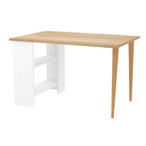 Bureau Arno Type de bureau: Bureau droit Approche écoresponsable : oui Bureau profondeur grande : 80 cm Emballage recyclé : 90 % Garantie client : 5 ans Hauteur hors tout : 73 cm Largeur hors tout : 140 cm Livré monté : non Montage : À monter Piétement coloris : Blanc Piétement coloris : Hêtre Piétement matériaux : Hêtre et aggloméré Plateau coloris : Pin Plateau épaisseur : 19 mm Plateau matériau : Mélaminé Poids du produit : 24 kg Produit recyclable : Oui 100 % Produit recyclé : 30 % Profondeur hors tout : 80 cm Sélection télétravail : oui Système électrique : non Type de bureau : Bureau droit Type de pied : Patins Type de piétement : 2 pieds Type d'élément de bureau : Bureau Bureau Arno bicolore dont vous apprécierez les tablettes de rangement. Dessus de bureau en mélaminé 19 mm. Caisson de rangement ouvert équipé de 2 tablettes fixes. 2 pieds fuseau en hêtre massif vernis. Fabrication Française. Bureau Arno, Type de piétement: 2 pieds, Montage: À monter, Hauteur hors tout: 73 cm, Largeur hors tout: 140 cm, Type de bureau: Bureau droit, Type d'élément de bureau: Bureau, Profondeur hors tout: 80 cm, Plateau matériau: Mélaminé, Piétement coloris: Blanc Hêtre, Plateau coloris: Pin, Poids du produit: 24 kg, Bureau profondeur grande: 80 cm, Livré monté: non, Type de pied: Patins, Coloris détaillé: Pin/blanc/hêtre, Sélection télétravail: oui, Emballage recyclé: 90 %, Produit recyclable: Oui 100 %, Produit recyclé: 30 %, Piétement matériau: Hêtre et aggloméré, Approche écoresponsable: oui, Système électrique: non, Plateau épaisseur: 19 mm
