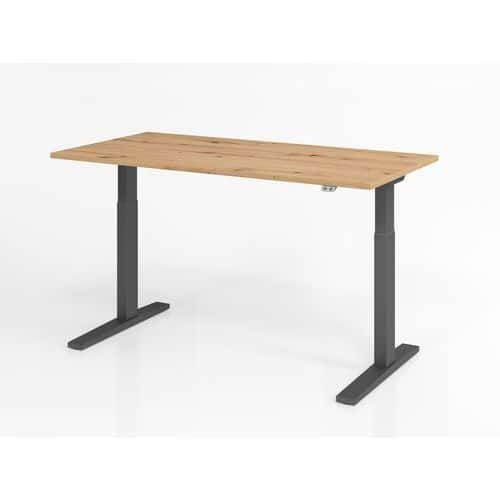 Bureau assisdebout série XMKA 160x80 cm Hammerbacher Approche écoresponsable : oui Hauteur : 120 cm Hauteur réglable maxi : 120 cm Hauteur réglable mini : 70 cm Largeur hors tout : 1600 mm Licence FSC : oui Livré monté : non Montage : À monter Nb de pieds : 2 Piétement coloris : Anthracite Plateau coloris : Marron/beige Plateau épaisseur : 25 mm Plateau matériau : Mélaminé Poids du produit : 54.7 kg Profondeur hors tout : 800 mm Sélection télétravail : oui Style : Ergonomique Système électrique : oui Type de bureau : Bureau droit Type de piétement : En L Type d'élément de bureau : Bureau Bureau assisdebout série XMKA 160x80 cm. Doté d'un plateau de table. Forme rectangulaire avec rebord renforcé. Dispose d'une commande à touches. Réglage électrique progressif de la hauteur. Bureau assisdebout série XMKA, Type de piétement: En L, Montage: À monter, Largeur hors tout: 1600 mm, Type de bureau: Bureau droit, Type d'élément de bureau: Bureau, Profondeur hors tout: 800 mm, Plateau matériau: Mélaminé, Piétement coloris: Anthracite, Plateau coloris: Marron/beige, Poids du produit: 54.7 kg, Hauteur réglable mini: 70 cm, Hauteur réglable maxi: 120 cm, Livré monté: non, Hauteur: 120 cm, Sélection télétravail: oui, Approche écoresponsable: oui, Système électrique: oui, Plateau épaisseur: 25 mm, Nb de pieds: 2, Licence FSC: oui, Style: Ergonomique