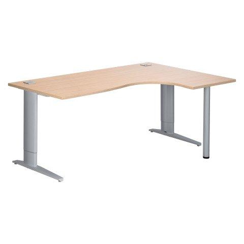 BUREAU COMPACT EXCELLENS L 180 CM CHÊNE CLAIR RETOUR À DROITE RÉGLABLE EN HAUTEUR PIÉTEMENT MÉTAL PLUS ALU