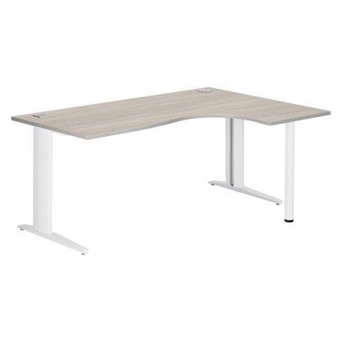 BUREAU COMPACT EXCELLENS L 180 CM CHÊNE GRIS RETOUR À DROITE PIÈTEMENT MÉTAL PLUS BLANC