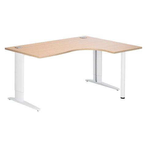BUREAU COMPACT L 160 CM CHÊNE CLAIR RETOUR À DROITE RÉGLABLE EN HAUTEUR PIÈTEMENT MÉTAL PLUS EXCELLENS BLANC