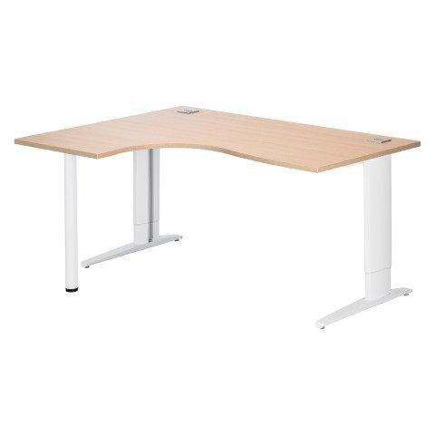 BUREAU COMPACT L 160 CM CHÊNE CLAIR RETOUR À GAUCHE RÉGLABLE EN HAUTEUR PIÈTEMENT MÉTAL PLUS EXCELLENS BLANC