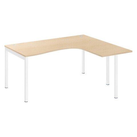 BUREAU COMPACT SQUADRA L 160 X 140 CM RETOUR À DROITE PLATEAU CHÊNE CLAIR PIÉTEMENT BLANC