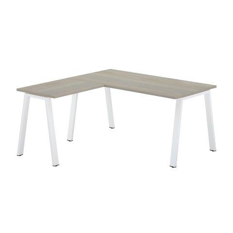 BUREAU D'ANGLE ECLA L 160 X P 160 CM CHÊNE GRIS PIÈTEMENT MÉTAL BLANC