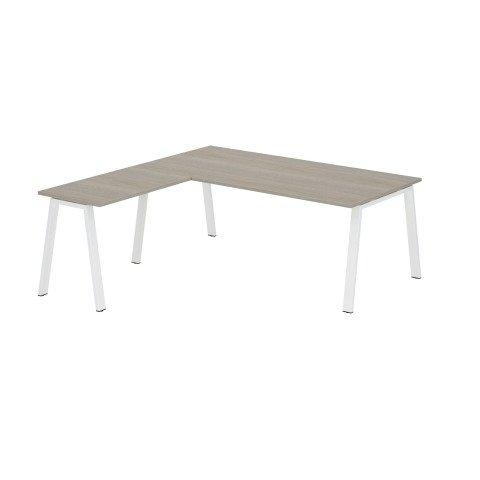 BUREAU D'ANGLE MANAGER ECLA CHÊNE GRIS L 200 X P 200 CM PIÈTEMENT MÉTAL BLANC