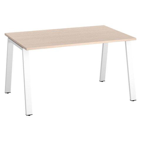 BUREAU DROIT ECLA CHÊNE CLAIR L 140 X P 80 CM PIÈTEMENT MÉTAL FINITION BLANC