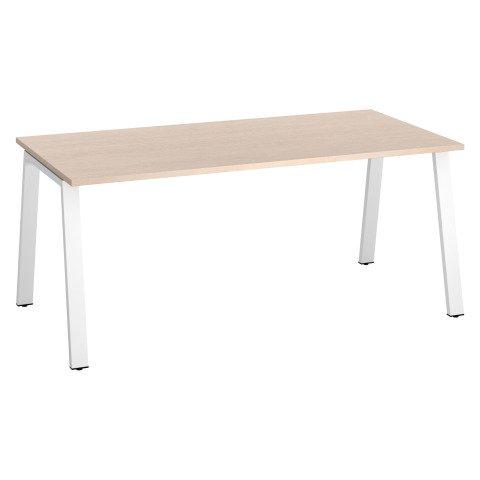 BUREAU DROIT ECLA CHÊNE CLAIR L 180 X P 80 CM PIÈTEMENT MÉTAL FINITION BLANC