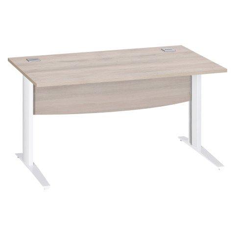 BUREAU DROIT EXCELLENS L 140 CM CHÊNE GRIS PIÈTEMENT '' L'' MÉTAL BLANC AVEC VOILE DE FOND