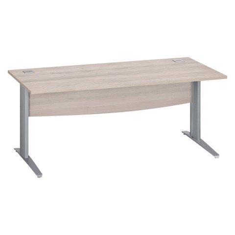 BUREAU DROIT EXCELLENS L 180 CM CHÊNE GRIS PIÈTEMENT '' L'' MÉTAL ALUMINIUM AVEC VOILE DE FOND