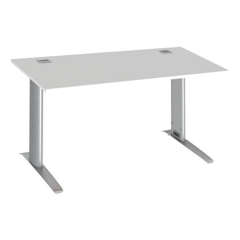BUREAU DROIT EXCELLENS L 140 CM BLANC PIÉTEMENT MÉTAL PLUS ALU