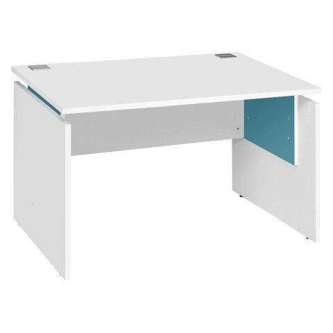 BUREAU DROIT INTUITIV' L 120 X P 80 CM PLATEAU BLANC ENTRETOISE BLEU ARGILE PIÈTEMENT PLEIN BOIS