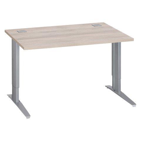 BUREAU DROIT L 120 CM CHÊNE GRIS RÉGLABLE EN HAUTEUR PIÈTEMENT MÉTAL EXCELLENS ALU