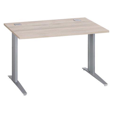 BUREAU DROIT L 120 CM EXCELLENS PIÈTEMENT MÉTAL PLUS CHÊNE GRIS / ALUMINIUM