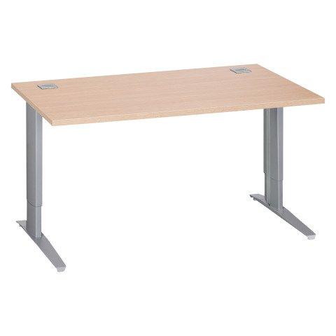 BUREAU DROIT L 140 CM CHÊNE CLAIR RÉGLABLE EN HAUTEUR PIÈTEMENT MÉTAL EXCELLENS ALU