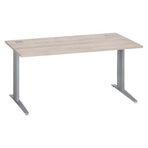 BUREAU DROIT L 160 CM EXCELLENS PIÈTEMENT MÉTAL PLUS CHÊNE GRIS / ALUMINIUM