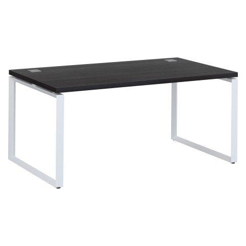 BUREAU DROIT L 160 X P 90 CM PLATEAU NOIR ÉBÈNE PIÈTEMENT ACIER BLANC SHINY