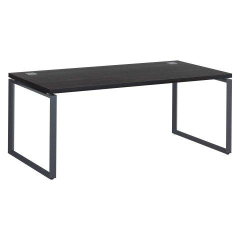 BUREAU DROIT L 180 X P 90 CM PLATEAU NOIR ÉBÈNE PIÈTEMENT ACIER ANTHRACITE SHINY
