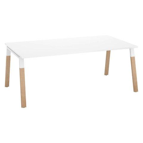 - Adoptez ce bureau Ecla au design d'inspiration scandinave dans sa version pieds bi-matière métal et bois massif. Composition :Plateau robuste conçu en panneaux de particules d’épaisseur 25mm, avec revêtement mélaminé et traité anti-reflets. Plateau pré-débouché : vous pourrez opter pour ajouter un top access central et 2 obturateurs (80 mm) ronds ou carrés (en option).Le plateau chêne clair, est légèrement texturé pour se rapprocher de l'aspect naturel du bois.Le plateau blanc est lisse, il s'accorde parfaitement à un aménagement au style contemporain.Muni de chants en ABS de 2 mm d’épaisseur, assortis au décor.Poutre de renfort sur toute la longueur du plateau. Piètement métal blanc et bois massif.Vérins de mise à niveau, idéal pour ajuster le niveau du bureau aux irrégularités du sol.Dimensions : Dimensions : H 75 x L 200 x P 100 cm.Accessoires en option : Top access ECLA métal L 24 x P 10 cm (Référence : 706475).Passe-câbles diamètre 80 mm - lot de 2 (Référence : 707904).Chargeur induction sans fil - technologie QI (Référence : 711384).Multiprise encastrable avec couvercle coulissant 1 prise secteur + 1 port RJ45 + 1 port USB (Référence : 711385).Voile de fond métal pour bureau Ecla (715638).Montage : Livré démonté. Montage en option.Normes et environnement : Ce produit est écoresponsable car il est certifié PEFC/10-31-1649. Label international, PEFC assure une gestion durable des forêts et garantit l’origine et la traçabilité du bois utilisé dans la fabrication des produits.Fabrication française.