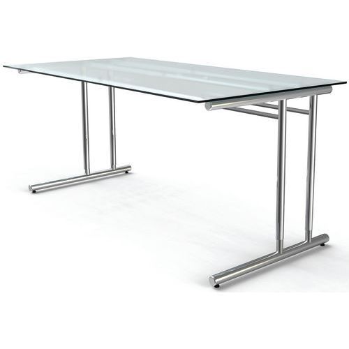 Bureau reglable Artline cadre cantilever L1600 x P800 x H680820 mm Approche écoresponsable : oui Chant matériau : ABS Emballage recyclable : Oui 100 % Emballage recyclé : 80 % Finition : Mélaminée Hauteur : 820 mm Hauteur réglable maxi : 820 mm Hauteur réglable mini : 680 mm Impact Environnemental : A Largeur hors tout : 160.00 cm Livré monté : non Modèle : Artline Piétement coloris : Argent/zingué Piétement matériaux : Acier Plateau coloris : Transparent Plateau épaisseur : 8 mm Plateau matériau : Mélaminé Poids du produit : 42.7 kg Produit recyclable : Oui 100 % Produit recyclé : 62 % Profondeur hors tout : 80.00 cm Système électrique : non Type de piétement : En T Type d'élément de bureau : Bureau dessus/cadre Plateau de bureau en verre de sécurité (ESG), épaisseur 8 mm Cadre cantilever (chromé) Hauteur réglable 680820 mm Bureau reglable, Type de piétement: En T, Largeur hors tout: 160.00 cm, Type d'élément de bureau: Bureau, Profondeur hors tout: 80.00 cm, Plateau matériau: Mélaminé, Piétement coloris: Argent/zingué, Plateau coloris: Transparent, Poids: 42.7 kg, Hauteur réglable mini: 680 mm, Hauteur réglable maxi: 820 mm, Livré monté: non, Chant matériau: ABS, Hauteur: 820 mm, Emballage recyclable: Oui 100 %, Emballage recyclé: 80 %, Produit recyclable: Oui 100 %, Produit recyclé: 62 %, Piétement matériau: Acier, Approche écoresponsable: oui, Système électrique: non, Modèle: Artline, Plateau épaisseur: 8 mm, Finition: Mélaminée