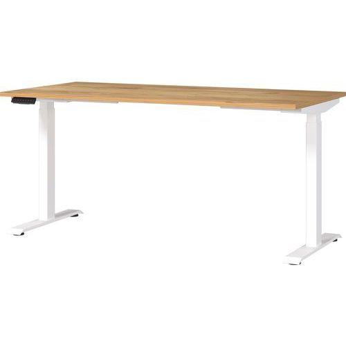 Bureau réglable en hauteur électrique GWJet 160cm Germania Charge maxi : 80 kg Configurable : non Hauteur : 120 cm Hauteur réglable maxi : 120 m Hauteur réglable mini : 72 m Largeur hors tout : 160 mm Livré monté : non Montage : À monter Nb de pieds : 2 Piétement coloris : Blanc Plateau coloris : Chêne Plateau matériau : Aggloméré Poids du produit : 45.434 g Profondeur hors tout : 80 mm Sélection télétravail : non Type de bureau : Bureau droit Type de piétement : 2 pieds Type d'élément de bureau : Bureau Bureau à hauteur réglable électriquement avec deux pieds en T. Plateau avec une charge maximale de 80 kg avec câble électrique et revêtement de surface résistant et antirayures. Prise et unité de commande pour monter et descendre le plateau en continu (de 72 à 120 cm). Unité de commande avec fonction mémoire pour enregistrer 3 hauteurs différentes et port USB avec fonction de recharge. 4 patins de mise à niveau et bords résistants aux chocs et aux coups. Bureau réglable en hauteur électrique GWJet, Type de piétement: 2 pieds, Montage: À monter, Largeur hors tout: 160 mm, Type de bureau: Bureau droit, Type d'élément de bureau: Bureau, Profondeur hors tout: 80 mm, Plateau matériau: Aggloméré, Piétement coloris: Blanc, Plateau coloris: Chêne, Poids: 45.434 g, Hauteur réglable mini: 72 m, Hauteur réglable maxi: 120 m, Configurable: non, Livré monté: non, Charge maxi: 80 kg, Hauteur: 120 cm, Sélection télétravail: non, Nb de pieds: 2