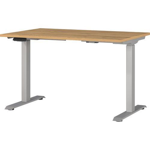 Bureau réglable en hauteur électrique GWMailand 120cm Germania Charge maxi : 80 kg Configurable : non Hauteur : 120 cm Hauteur réglable maxi : 120 m Hauteur réglable mini : 72 m Largeur hors tout : 120 mm Livré monté : non Montage : À monter Nb de pieds : 2 Piétement coloris : Argent Plateau coloris : Chêne Plateau matériau : Aggloméré Poids du produit : 40.709 g Profondeur hors tout : 80 mm Sélection télétravail : non Type de bureau : Bureau droit Type de piétement : 2 pieds Type d'élément de bureau : Bureau Bureau à hauteur réglable électriquement avec deux pieds en T. Plateau (charge maximale 80 kg) avec revêtement de surface résistant aux rayures et à l'usure. Avec câble électrique, prise et unité de commande pour monter et descendre le plateau en continu (de 72 à 120 cm). 4 patins de mise à niveau et bords résistants aux chocs et aux coups. Bureau réglable en hauteur électrique GWMailand, Type de piétement: 2 pieds, Montage: À monter, Largeur hors tout: 120 mm, Type de bureau: Bureau droit, Type d'élément de bureau: Bureau, Profondeur hors tout: 80 mm, Plateau matériau: Aggloméré, Piétement coloris: Argent, Plateau coloris: Chêne, Poids: 40.709 g, Hauteur réglable mini: 72 m, Hauteur réglable maxi: 120 m, Configurable: non, Livré monté: non, Charge maxi: 80 kg, Hauteur: 120 cm, Sélection télétravail: non, Nb de pieds: 2