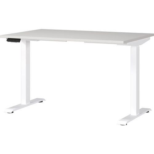 Bureau réglable en hauteur électrique GWMailand 120cm Germania Charge maxi : 80 kg Configurable : non Hauteur : 120 cm Hauteur réglable maxi : 120 m Hauteur réglable mini : 72 m Largeur hors tout : 120 mm Livré monté : non Montage : À monter Nb de pieds : 2 Piétement coloris : Blanc Plateau coloris : Gris clair Plateau matériau : Aggloméré Poids du produit : 40.709 g Profondeur hors tout : 80 mm Sélection télétravail : non Type de bureau : Bureau droit Type de piétement : 2 pieds Type d'élément de bureau : Bureau Bureau à hauteur réglable électriquement avec deux pieds en T. Plateau (charge maximale 80 kg) avec revêtement de surface résistant aux rayures et à l'usure. Avec câble électrique, prise et unité de commande pour monter et descendre le plateau en continu (de 72 à 120 cm). 4 patins de mise à niveau et bords résistants aux chocs et aux coups. Bureau réglable en hauteur électrique GWMailand, Type de piétement: 2 pieds, Montage: À monter, Largeur hors tout: 120 mm, Type de bureau: Bureau droit, Type d'élément de bureau: Bureau, Profondeur hors tout: 80 mm, Plateau matériau: Aggloméré, Piétement coloris: Blanc, Plateau coloris: Gris clair, Poids: 40.709 g, Hauteur réglable mini: 72 m, Hauteur réglable maxi: 120 m, Configurable: non, Livré monté: non, Charge maxi: 80 kg, Hauteur: 120 cm, Sélection télétravail: non, Nb de pieds: 2