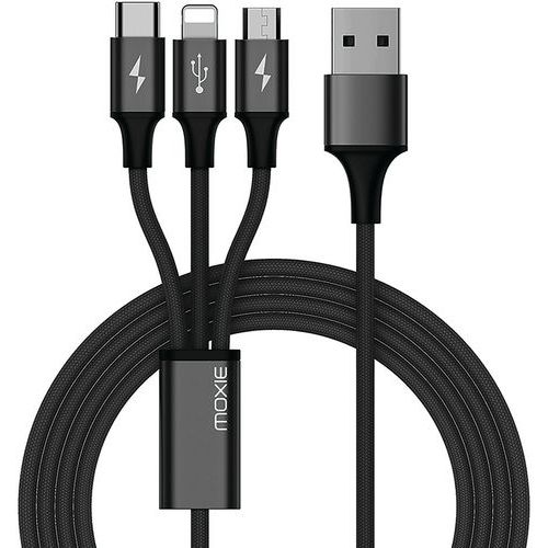 Descriptif du produit :Câble multi USB Câble Lightning , MicroUSB, USB typeC Moxie Coloris : Noir Convient pour : Tous les smartphones Sélection télétravail : oui Type de produit : Câble Câble 3 en 1 d'une longueur de 1,2 m de TypeC. Compatible charge rapide. Câble renforcé en nylon tressée haute qualité: résiste au pliage répété. Câble multi USB, Coloris: Noir, Sélection télétravail: oui, ...