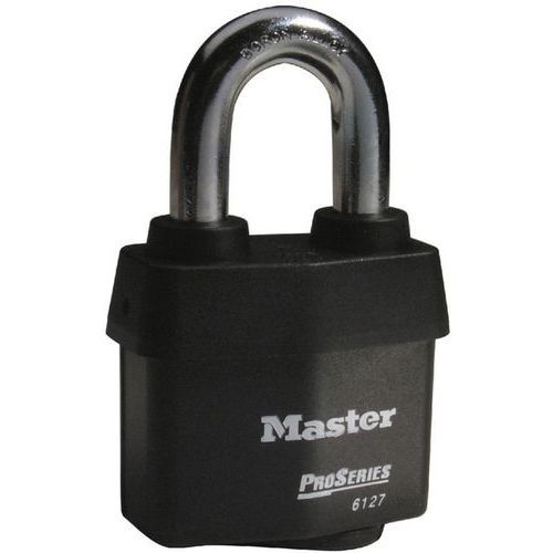 Descriptif du produit :Cadenas en acier laminé avec protection thermoplastique Master Lock Design durable : corps en acier massif ; le revêtement exclusif Pro Series® Weather Tough® protège le cadenas de l'eau, du gel, de la poussière et de l'encrassement. Application haute Sécurité : cadenas à cylindre à 6 goupilles bobines pratiquement impossible à crocheter. Double verrouillage à billes résistant ...