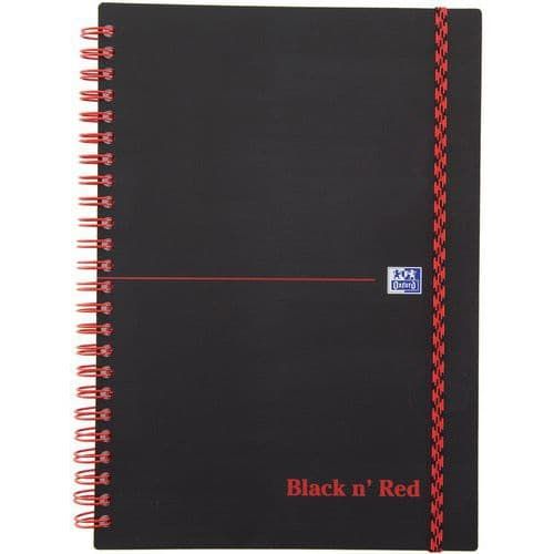 Cahier black'n red spirale a5 140 pages 90g ligné 7mm polypro Oxford Coloris : Noir Conditionnement produit : 5 Formats : A5 Grammage : 90 g/m² Hauteur : 21 cm Longueurs : 14.8 cm Modèle : Black N Red Nb de pages : 140 Perforé : oui Réglure : Lignes Type de reliure : À spirale La couverture est en polypro lisse et opaque. Elle assure un cahier souple et robuste, qui résiste aux rayures, aux éclaboussures et aux déchirures. L'opacité de la couverture permet de garder son contenu confidentiel. Une page de garde est située derrière la couverture. Elle permet de noter toutes les informations : coordonnées, références importantes etc. Le contenu du cahier noir est sécurisé grâce au système de fermeture par un élastique plat rouge, à l'italienne. Les documents sont protégés et bien maintenus. La réglure lignée 7mm dispose d'un entête pour identifier facilement le contenu en indiquant un titre et une date; ainsi qu'une marge à gauche pour faire des annotations. La reliure double spirale rouge est résistante et permet une ouverture du cahier à 360°, pour un maximum de flexibilité et de confort pendant l'utilisation. Découvrez SCRIBZEE : l'application gratuite et innovante pour scanner, sauvegarder et organiser ses notes. Cahier black'n red spirale a5 140 pages 90g ligné 7mm polypro, Grammage: 90 g/m², Réglure: Lignes, Nb de pages: 140, Type de reliure: À spirale, Coloris: Noir, Longueur: 14.8 cm, Hauteur: 21 cm, Conditionnement: 5, Perforé: oui, Format: A5, Modèle: Black N Red