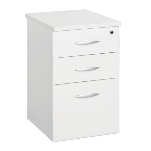 - Choisissez le caisson hauteur de bureau Bruneau Excellens, pratique pour aménager votre espace de travail. Fabriqué en panneau de particules mélaminé, il dispose d’une structure et de chants droits résistant à la flexion. Grâce à des vérins réglables en hauteur, vous pouvez l’ajuster selon le niveau souhaité. Esthétiques, les poignées métalliques en finition aluminium font ressortir le côté design du caisson.D’une grande capacité, le caisson se compose d’un tiroir pour 45 dossiers suspendus pour la profondeur 60 cm et 63 dossiers suspendus pour la profondeur 80 cm. Le caisson dispose de 2 tiroirs pour un rangement à plat. De plus, le meuble possède un plumier noir en ABS amovible pour garder vos divers produits d’écriture à portée de main. Afin de sécuriser vos dossiers, le caisson se ferme par un système de verrouillage centralisé.Ce modèle dispose de 2 profondeurs bien distinctes. Choisissez entre le meuble à P 60 cm (pour l’utiliser comme retour) et l’accessoire à P 80 cm (pour prolonger le bureau). Optez pour la couleur qui s’harmonise le plus à votre décor parmi le blanc, chêne clair, gris clair, hêtre ou merisier.Fabrication française.Montage en option. Dimensions :- Caisson : H 73 x L 44 x P 60 ou P 80 cm - Tiroir pour dossier suspendu : H 24 x L 33 x P 49,5 cm pour le modèle P 60 cm et H 24 x L 33 x 69,5 cm pour le modèle P 80 cm- Tiroirs de rangement à plat : H 6 x L 33 x 49,5 cm pour le modèle P 60 cm et H 6 x L 33 x 69,5 cm pour le modèle P 80 cm.Fabrication Française à l’exception de la finition chêne clair de Fabrication Européenne.