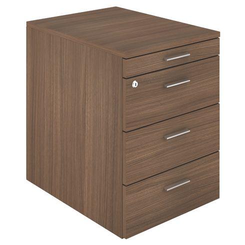 - Equipez votre bureau de ce caisson mobile bois Darwin. Pratique, élégant et moderne, il vous permet d'avoir vos documents à proximité. Réalisé en panneaux de particules mélaminées, il témoigne d'une grande robustesse pour une protection optimale contre les chocs. Spacieux, il dispose d’un tiroir plumier et 3 tiroirs de rangement à plat pour ranger suffisamment de dossiers et fournitures de bureau. Pour une mesure de sécurité, ce mobilier possède un verrouillage centralisé pour préserver son contenu contre le vol ou l’indiscrétion. Très pratique, il peur être déplacé facilement grâce à ses roulettes non visibles.Proposé en 3 couleurs : blanc, noyer, orme. Dimensions : H 58 x L 42 x P 56. Dimensions utiles tiroir de rangement à plat : H 8 x L 33 x P 49 cm.Largeur élément départ et suivant associé 106 cm.Panneau conforme au CARB, donc E0 sans formaldéhyde.Montage en option.Ce produit est écoresponsable car il est certifié FSC. Label international, FSC assure une gestion durable des forêts et garantit l’origine et la traçabilité du bois utilisé dans la fabrication des produits.
