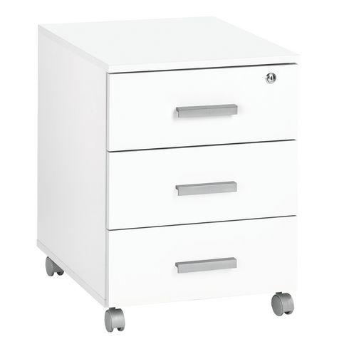 - Optimisez le rangement de vos dossiers grâce au caisson mobile Eden. Fabriqué en panneaux de particules mélaminées, ce modèle fait preuve d’une grande résistance. Afin de faciliter leur ouverture, les tiroirs de ce mobilier sont dotés de poignées en métal. Gage d’un rangement sécurisé, le modèle Eden bénéficie d’un verrouillage centralisé par serrure (2 clés fournies). Ses 4 roulettes mobiles facilitent son déplacement. Bruneau propose ce caisson en 2 couleurs (blanc, chêne) et en 2 modèles : - à 2 tiroirs (1 tiroir pour 45 dossiers suspendus avec 5ème roulette anti-basculement),- à 3 tiroirs (rangements à plat, dimensions tiroirs : H 6 x L 33 x P 49 5 cm).Dimensions : H 56 x L 43 x P 60 cm. Montage en option.Normes et environnement :Ce produit est écoresponsable car il est certifié PEFC. Label international, PEFC assure une gestion durable des forêts et garantit l’origine et la traçabilité du bois utilisé dans la fabrication des produits.