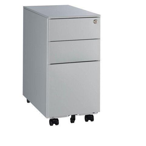 - Ce caisson mobile compact de 30 cm de large permet à la fois de ranger efficacement vos dossiers et autres objets utiles tout en les gardant à portée de main.Le principal atout de ce meuble de rangement est qu’il se glisse partout et trouve facilement sa place parmi les autres mobiliers grâce à sa petite largeur. Composition:Caisson métallique monté en tôle d'acier 8/10eTiroirs: 3 tiroirs montés sur glissières à billes à extraction totale de 49 cm, d’un plumier offrant plusieurs options de rangement ainsi qu'un tiroir pour dossiers suspendus d'une capacité entre 10 et 20 dossiers maximum rangés verticalement. 1 Barre de suspension pour dossiers à fixer sur la 4ème encoche Les dossiers suspendus tenant entre cette barre et le fond du tiroir.Serrure centralisée à tiges (fermeture de tous les tiroirs) pour y garder vos documents en toute sécurité, 2 clés pliantes numérotées incluses4 roulettes doubles galets dont 2 avec freins à l'avant. 1 roulette anti basculement Dimensions hors tout : H 60 x L 30 x P 52 cm.Dimensions des tiroirs: 2 tiroirs à plat: L 24 x H 7 x P 49 cmtiroir à dossiers suspendus: L 24 x H 24 x P 49 cmCompatibilité dossiers : Dossiers suspendus 24 x 32 cm (se positionnent dans la profondeur du caisson compact, non dans la largeur du caisson)Montage: Livré totalement monté.