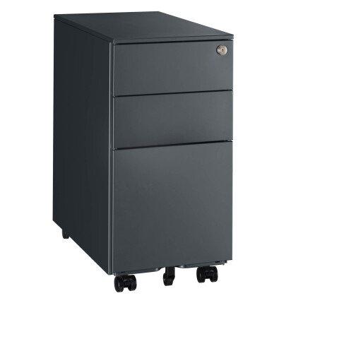 - Ce caisson mobile compact de 30 cm de large permet à la fois de ranger efficacement vos dossiers et autres objets utiles tout en les gardant à portée de main.Le principal atout de ce meuble de rangement est qu’il se glisse partout et trouve facilement sa place parmi les autres mobiliers grâce à sa petite largeur. Composition:Caisson métallique monté en tôle d'acier 8/10eTiroirs: 3 tiroirs montés sur glissières à billes à extraction totale de 49 cm, d’un plumier offrant plusieurs options de rangement ainsi qu'un tiroir pour dossiers suspendus d'une capacité entre 10 et 20 dossiers maximum rangés verticalement. 1 Barre de suspension pour dossiers à fixer sur la 4ème encoche Les dossiers suspendus tenant entre cette barre et le fond du tiroir.Serrure centralisée à tiges (fermeture de tous les tiroirs) pour y garder vos documents en toute sécurité, 2 clés pliantes numérotées incluses4 roulettes doubles galets dont 2 avec freins à l'avant. 1 roulette anti basculement Dimensions hors tout : H 60 x L 30 x P 52 cm.Dimensions des tiroirs: 2 tiroirs à plat: L 24 x H 7 x P 49 cmtiroir à dossiers suspendus: L 24 x H 24 x P 49 cmCompatibilité dossiers : Dossiers suspendus 24 x 32 cm (se positionnent dans la profondeur du caisson compact, non dans la largeur du caisson)Montage: Livré totalement monté.