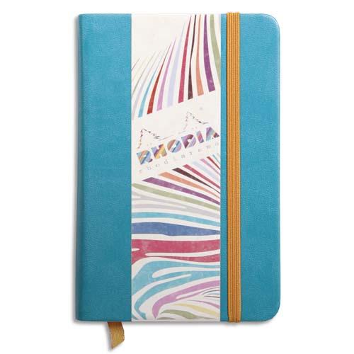 RHODIARAMA CARNET REMBORDÉ RIGIDE 9X14 CM 192 PAGES UNI PAPIER IVOIRE 90G FERMETURE ÉLASTIQUE - TURQUOISE - LOT DE 2