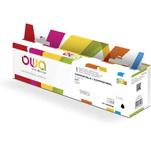 Cartouche d'encre remanufacturée HP 980 Owa Approche écoresponsable : oui Capacité (nb de pages) : 11000 Consommable pour imprimante de type : Jet d'encre Emballage recyclable : Oui 100 % Encre coloris : Noir Marque de l'imprimante : HP Produit reconditionné : oui Produit recyclable : Oui 100 % Produit recyclé : 95 % Réf. Fabricant : HP 980 B Cartouche d'encre remanufacturée HP 980 OWA. Cartouche remanufacturée de première qualité. Consommables de marque (OEM) collectés après la première utilisation et remanufacturés dans leur forme originale. Rendement de page égal ou supérieur à celui des cartouches à la marque des fabricants d’imprimantes. Qualité d'impression supérieure à la norme d'impression. Cartouche d'encre remanufacturée HP 980, Capacité (nb de pages): 11000, Marque de l'imprimante: HP, Consommable pour imprimante de type: Jet d'encre, Produit reconditionné: oui, Réf. Fabricant: HP 980 B, Encre coloris: Noir, Emballage recyclable: Oui 100 %, Produit recyclable: Oui 100 %, Produit recyclé: 95 %, Approche écoresponsable: oui