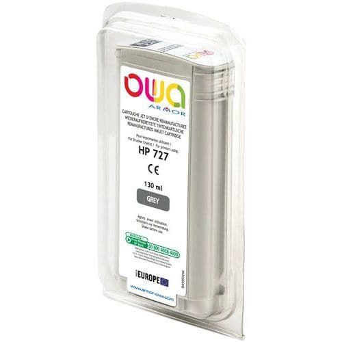 Cartouche d'encre traceur remanufacturée HP 727 Owa Approche écoresponsable : oui Capacité : 0.13 L Consommable pour imprimante de type : Jet d'encre Encre coloris : Gris Marque de l'imprimante : HP Produit reconditionné : oui Produit recyclable : Oui 100 % Produit recyclé : 98 % Réf. Fabricant : HP 727 Cartouche d'encre traceur remanufacturée HP 727 OWA. Cartouche remanufacturée de première qualité. Consommables de marque (OEM) collectés après la première utilisation et remanufacturés dans leur forme originale. Rendement de page égal ou supérieur à celui des cartouches à la marque des fabricants d’imprimantes. Qualité d'impression supérieure à la norme d'impression. Cartouche d'encre traceur remanufacturée HP 727, Marque de l'imprimante: HP, Consommable pour imprimante de type: Jet d'encre, Produit reconditionné: oui, Réf. Fabricant: HP 727, Encre coloris: Gris, Capacité: 0.13 L, Produit recyclable: Oui 100 %, Produit recyclé: 98 %, Approche écoresponsable: oui