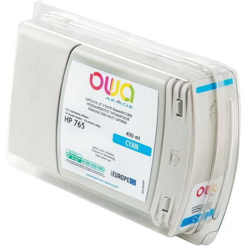 Cartouche d'encre traceur remanufacturée HP 765 Owa Approche écoresponsable : oui Consommable pour imprimante de type : Jet d'encre Encre coloris : Cyan Marque de l'imprimante : HP Produit reconditionné : oui Produit recyclable : Oui 100 % Produit recyclé : 98 % Réf. Fabricant : HP 765 Cartouche d'encre traceur remanufacturée HP 765 OWA. Cartouche remanufacturée de première qualité. Consommables de marque (OEM) collectés après la première utilisation et remanufacturés dans leur forme originale. Rendement de page égal ou supérieur à celui des cartouches à la marque des fabricants d’imprimantes. Qualité d'impression supérieure à la norme d'impression. Cartouche d'encre traceur remanufacturée HP 765, Marque de l'imprimante: HP, Consommable pour imprimante de type: Jet d'encre, Produit reconditionné: oui, Réf. Fabricant: HP 765, Encre coloris: Cyan, Produit recyclable: Oui 100 %, Produit recyclé: 98 %, Approche écoresponsable: oui