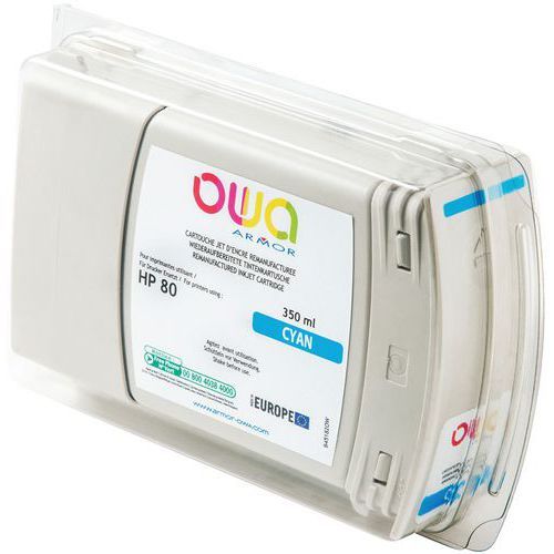 Cartouche d'encre traceur remanufacturée HP 80 Owa Approche écoresponsable : oui Consommable pour imprimante de type : Jet d'encre Encre coloris : Cyan Marque de l'imprimante : HP Produit reconditionné : oui Produit recyclable : Oui 100 % Produit recyclé : 98 % Réf. Fabricant : HP 80 Cartouche d'encre traceur remanufacturée HP 80 OWA. Cartouche remanufacturée de première qualité. Consommables de marque (OEM) collectés après la première utilisation et remanufacturés dans leur forme originale. Rendement de page égal ou supérieur à celui des cartouches à la marque des fabricants d’imprimantes. Qualité d'impression supérieure à la norme d'impression. Cartouche d'encre traceur remanufacturée HP 80, Marque de l'imprimante: HP, Consommable pour imprimante de type: Jet d'encre, Produit reconditionné: oui, Réf. Fabricant: HP 80, Encre coloris: Cyan, Produit recyclable: Oui 100 %, Produit recyclé: 98 %, Approche écoresponsable: oui