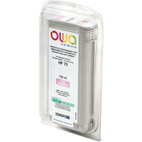 Cartouche d'encre traceur remanufacturée HP 70 Owa Approche écoresponsable : oui Capacité : 0.13 L Consommable pour imprimante de type : Jet d'encre Encre coloris : Magenta clair Marque de l'imprimante : HP Produit reconditionné : oui Produit recyclable : Oui 100 % Produit recyclé : 98 % Réf. Fabricant : HP 70 Cartouche d'encre traceur remanufacturée HP 70 OWA. Cartouche remanufacturée de première qualité. Consommables de marque (OEM) collectés après la première utilisation et remanufacturés dans leur forme originale. Rendement de page égal ou supérieur à celui des cartouches à la marque des fabricants d’imprimantes. Qualité d'impression supérieure à la norme d'impression. Cartouche d'encre traceur remanufacturée HP 70, Marque de l'imprimante: HP, Consommable pour imprimante de type: Jet d'encre, Produit reconditionné: oui, Réf. Fabricant: HP 70, Encre coloris: Magenta clair, Capacité: 0.13 L, Produit recyclable: Oui 100 %, Produit recyclé: 98 %, Approche écoresponsable: oui